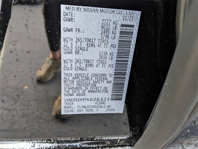 $6,624 off MSRP! FREE OIL CHANGES FOR LIFE, 120V Power Outlet in Bed, 120V Power Outlet in Rear Center Console, Auto-Dimming Mirror, Auto-Tilt & Slide Sunroof w/Manual Shade, Bed Under-Rail Lighting, Black Accent Package, Fender Premium Audio System w/10 Speakers, Heated Front Seats, Heated Outside Mirrors, Heated Steering Wheel, HomeLink UGDO, Intelligent Around View Monitor (I-AVM), Leather Seat Trim, Nissan Door-to-Door Navigation, Partial Under-Seat Storage Delete, PRO Premium Package, PRO-4X Convenience Package, Remote Engine Starter, Spray-In Bedliner, Traffic Sign Recognition (TSR), Trailer Hitch w/Wiring Harness, Utili-Track System, Wheels: 17 Off-Road Alloy, Wireless Apple CarPlay/Wireless Android Auto, Wireless Charging for Personal Devices. Super Black 2026 Nissan Frontier PRO-4X 4WD 9-Speed Automatic with Overdrive 3.8L DI DOHC 24V V6