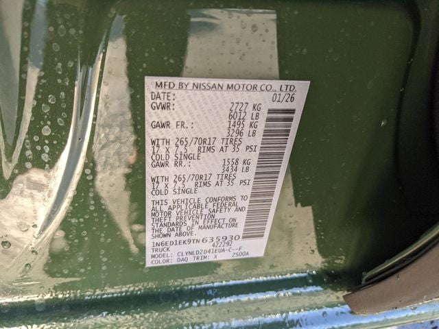 $6,435 off MSRP! Priced below KBB Fair Purchase Price! FREE OIL CHANGES FOR LIFE, 120V Power Outlet in Bed, 120V Power Outlet in Rear Center Console, Bed Under-Rail Lighting, Black Accent Package, Heated Front Seats, Heated Outside Mirrors, Heated Steering Wheel, Intelligent Around View Monitor (I-AVM), PRO-4X Convenience Package, Remote Engine Starter, Utili-Track System. Tactical Green Metallic 2026 Nissan Frontier PRO-4X 4WD 9-Speed Automatic with Overdrive 3.8L DI DOHC 24V V6