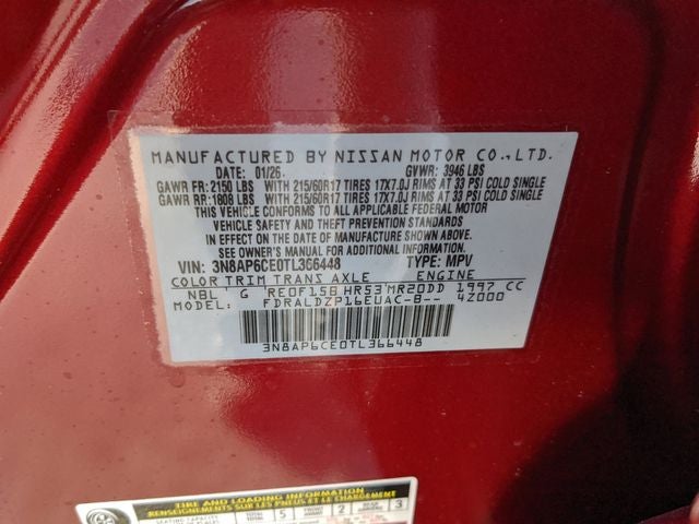 $3,232 off MSRP! FREE OIL CHANGES FOR LIFE, Cold Weather Package, Heated Front Seats, Heated Mirrors, Panoramic Moonroof, Rear Floor Heater Ducts, Sunglass Holder, SV Premium Package. Scarlet Ember Tintcoat 2026 Nissan Kicks SV FWD CVT with Xtronic 2.0L DOHC