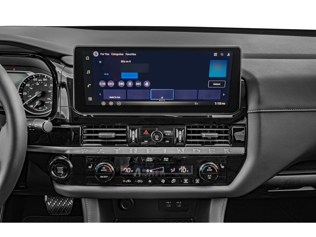 Radio: AM/FM Audio System w/NissanConnect -inc: 6 speakers, 5G Wi-Fi hotspot, wireless Apple CarPlay and Android Auto, 12.3" center touch-screen display, SiriusXM satellite radio, 2 front USB connection (1 type C charge and data ports), Bluetooth® hands-free phone system, streaming audio and messaging and hands-free text messaging assistant
