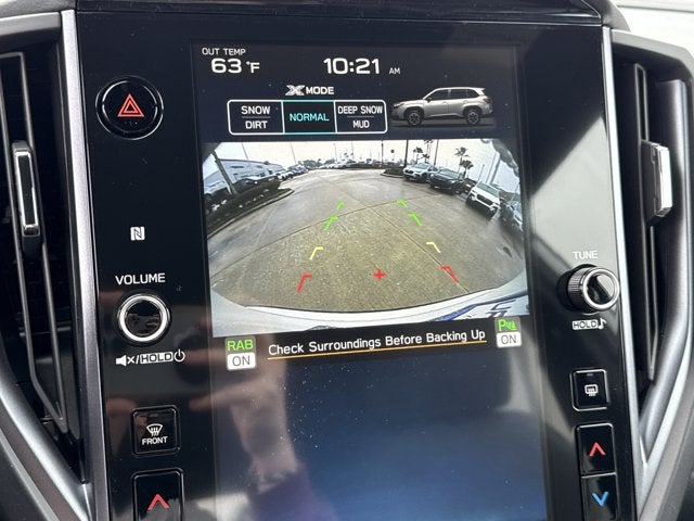 Equipped with 4-Wheel Disc Brakes, 6 Speakers, ABS brakes, Air Conditioning, Alloy wheels, AM/FM radio: SiriusXM with 360L, Anti-whiplash front head restraints, Auto High-beam Headlights, Automatic temperature control, Brake assist, Bumpers: body-color, Driver door bin, Driver vanity mirror, Dual front impact airbags, Dual front side impact airbags, Electronic Stability Control, Emergency communication system: MySubaru Companion (5-years free), Exterior Parking Camera Rear, Four wheel independent suspension, Front anti-roll bar, Front Bucket Seats, Front Center Armrest, Front dual zone A/C, Front fog lights, Front reading lights, Fully automatic headlights, Heated door mirrors, Heated Front Bucket Seats, Heated front seats, Heated steering wheel, Illuminated entry, Knee airbag, Leather steering wheel, Low tire pressure warning, Occupant sensing airbag, Outside temperature display, Overhead airbag, Overhead console, Panic alarm, Passenger door bin, Passenger vanity mirror, Perforated Leather-Trimmed Upholstery, Power door mirrors, Power driver seat, Power Liftgate, Power moonroof: Panoramic, Power passenger seat, Power steering, Power windows, Radio data system, Radio: Subaru 11.6 Multimedia Plus System, Rain sensing wipers, Rear anti-roll bar, Rear seat center armrest, Rear window defroster, Rear window wiper, Remote keyless entry, Security system, Speed control, Speed-sensing steering, Split folding rear seat, Spoiler, Steering wheel mounted audio controls, Tachometer, Telescoping steering wheel, Tilt steering wheel, Traction control, Trip computer, Turn signal indicator mirrors, Variably intermittent wipers, and Wheels: 18 x 7.0 J Dark Metallic Aluminum-Alloy.