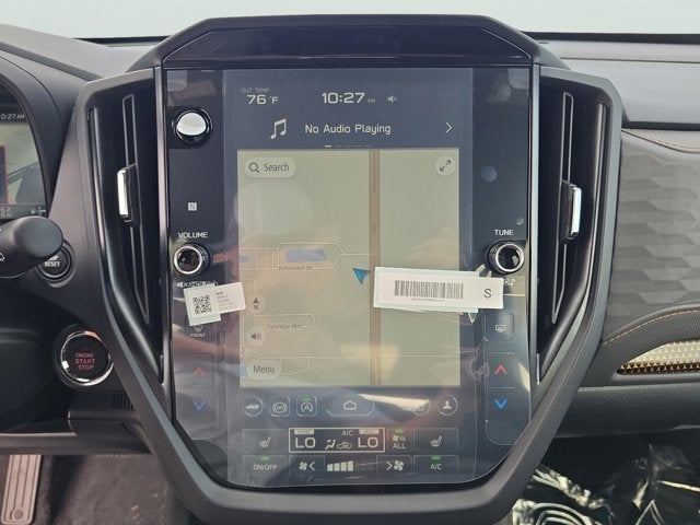 Equipped with Harman/Kardon Speaker System and Power Rear Gate (Power Rear Gate and Radio: Subaru 11.6 Multimedia Navigation System), 4-Wheel Disc Brakes, 6 Speakers, ABS brakes, Air Conditioning, Alloy wheels, AM/FM radio: SiriusXM with 360L, Anti-whiplash front head restraints, Auto High-beam Headlights, Auto-Dimming Mirror with Compass and HomeLink, Automatic temperature control, Brake assist, Bumpers: body-color, Cargo Net, Carpeted Floor Mats - Wilderness, Driver door bin, Driver vanity mirror, Dual front impact airbags, Dual front side impact airbags, Electronic Stability Control, Emergency communication system: MySubaru Companion (5-years free), Exterior Parking Camera Rear, Four wheel independent suspension, Front anti-roll bar, Front Bucket Seats, Front Center Armrest, Front dual zone A/C, Front fog lights, Front reading lights, Fully automatic headlights, Heated door mirrors, Heated Front Bucket Seats, Heated front seats, Illuminated entry, Knee airbag, LED Upgrade, Low tire pressure warning, Occupant sensing airbag, Outside temperature display, Overhead airbag, Overhead console, Panic alarm, Passenger door bin, Passenger vanity mirror, Power door mirrors, Power driver seat, Power moonroof: Panoramic, Power steering, Power windows, Radio data system, Radio: Subaru 11.6 Multimedia Plus System, Rain sensing wipers, Rear anti-roll bar, Rear seat center armrest, Rear window defroster, Rear window wiper, Remote keyless entry, Security system, Speed control, Speed-sensing steering, Split folding rear seat, Spoiler, Steering wheel mounted audio controls, Tachometer, Telescoping steering wheel, Textured StarTex Upholstery, Tilt steering wheel, Traction control, Trip computer, Turn signal indicator mirrors, Variably intermittent wipers, and Wheels: 17 x 7.0 J Matte Black Finish Aluminum-Alloy.