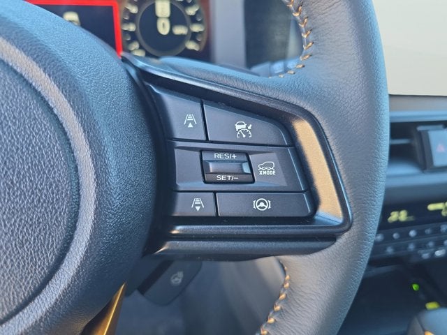 Equipped with Moonroof and Navigation and Surround View Monitor (Power Moonroof, Radio: Subaru 12.1 Multimedia System with Navigation, and Surround View Monitor), 12 Speakers, 4-Wheel Disc Brakes, ABS brakes, Aero Crossbar Set, Air Conditioning, Alloy wheels, AM/FM radio: SiriusXM with 360L, Anti-whiplash front head restraints, Auto High-beam Headlights, Automatic temperature control, Blind Spot Warning, Brake assist, Bumpers: body-color, Cargo Net, Driver door bin, Driver vanity mirror, Dual front impact airbags, Dual front side impact airbags, Electronic Stability Control, Emergency communication system: MySubaru Companion (5-years free), Exterior Parking Camera Rear, Four wheel independent suspension, Front anti-roll bar, Front Bucket Seats, Front Center Armrest w/Storage, Front dual zone A/C, Front fog lights, Front reading lights, Fully automatic headlights, harman/kardon® Speakers, Heated door mirrors, Heated Front Bucket Seats, Heated front seats, Heated rear seats, Heated steering wheel, HVAC memory, Illuminated entry, Knee airbag, Leather Shift Knob, Leather steering wheel, LED Upgrade, Low tire pressure warning, Occupant sensing airbag, Outside temperature display, Overhead airbag, Overhead console, Panic alarm, Passenger door bin, Passenger vanity mirror, Power door mirrors, Power driver seat, Power Liftgate, Power steering, Power windows, Radio: Subaru 12.1 Multimedia System, Rain sensing wipers, Rear anti-roll bar, Rear Seat Back Protector, Rear seat center armrest, Rear window defroster, Rear window wiper, Remote keyless entry, Security system, Speed control, Speed-sensing steering, Split folding rear seat, Spoiler, StarTex-Trimmed Upholstery, Steering wheel mounted audio controls, Tachometer, Telescoping steering wheel, Tilt steering wheel, Traction control, Trip computer, Turn signal indicator mirrors, Variably intermittent wipers, and Wheels: 17 x 7J Matte Black Finish Aluminum-Alloy.