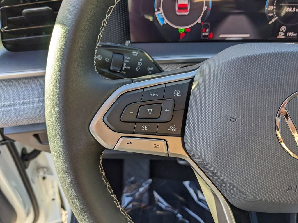 MIB4 Composition Media Touchscreen w/AM/FM Radio -inc: WMA/MP3/FLAC player w/USB, 12.9" touchscreen multi-function center display w/backlit sliders, voice control, 6 speakers + center speaker (7 speakers total) sound system, capability for in-vehicle 4G LTE enabled Wi-Fi (cellular data plan required; includes limited trial), capability for connected vehicle services (capabilities for services vary; requires enrollment or subscription), Bluetooth® connectivity (for compatible devices), SiriusXM w/360L (w/3-month free trial subscription; 360L services require acceptance of Car-Net terms), App-Connect smartphone integration (w/Apple CarPlay, Android Auto and MirrorLink) via USB, wireless App-Connect smartphone integration (for compatible devices) w/multi-phone pairing capability, 45W fast charging (for compatible mobile phones and accessories) via USB in both rows and Qi wireless inductive charger, cooled, up to 15W (for compatible mobile phones and accessories) All connected vehicle services are subject to terms and limitations. Some services require a paid subscription. See dealer or vw.com/connected for important details.