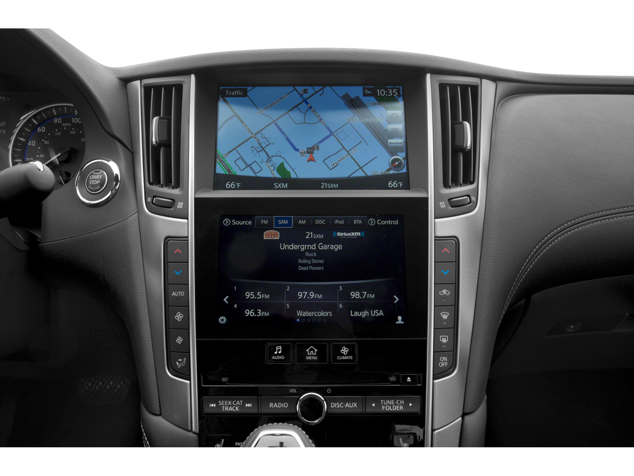Radio: AM/FM HD Radio -inc: Bose performance series 13-speaker premium audio system w/genuine metal speaker grilles, CD, MP3 playback, speed-sensitive volume control, Bluetooth® hands-free phone system w/hands-free text messaging assistant plus, 2 USB connection ports for iPod interface, flash drive, and other compatible devices, auxiliary input jacks, SiriusXM satellite radio w/90-day trial subscription, Traffic/Travel Link w/4-year complimentary subscription, Bluetooth® streaming audio, steering wheel-mounted audio controls and INFINITI voice recognition for audio and vehicle information systems