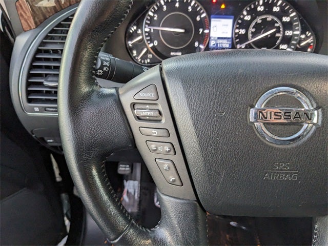 New Price! Clean CARFAX. *PRICED BELOW WHOLESALE*, LOCAL TRADE IN, THIRD ROW SEATING, POWER SUNROOF, ASE CERTIFIED TECHNICIAN INSPECTED, NAVIGATION SYSTEM, CLEAN CARFAX, FREE OIL CHANGES FOR LIFE, 20 Painted Alloy Wheels, 3rd row seats: split-bench, AM/FM radio: SiriusXM, Auto-dimming door mirrors, Auto-dimming Rear-View mirror, Auto-leveling suspension, Blind Spot Warning, Brake assist, Electronic Stability Control, Emergency communication system: NissanConnect Services, Exterior Parking Camera Rear, Four wheel independent suspension, Front fog lights, Heated Front Bucket Seats w/Power Driver's Memory, Heated front seats, Intelligent Back-Up Intervention (I-BI), Intelligent Distance Control (I-DC), Leather-Appointed Seat Trim, Memory seat, Navigation System, Power driver seat, Power Liftgate, Power Sliding Moonroof w/Front Tilt & Rear Slide, Premium Package, Rain sensing wipers, Rear Cross Traffic Alert (RCTA), Speed-sensing steering, Traction control, Turn signal indicator mirrors. Super Black 2020 Nissan Armada SL RWD 7-Speed Automatic 5.6L V8