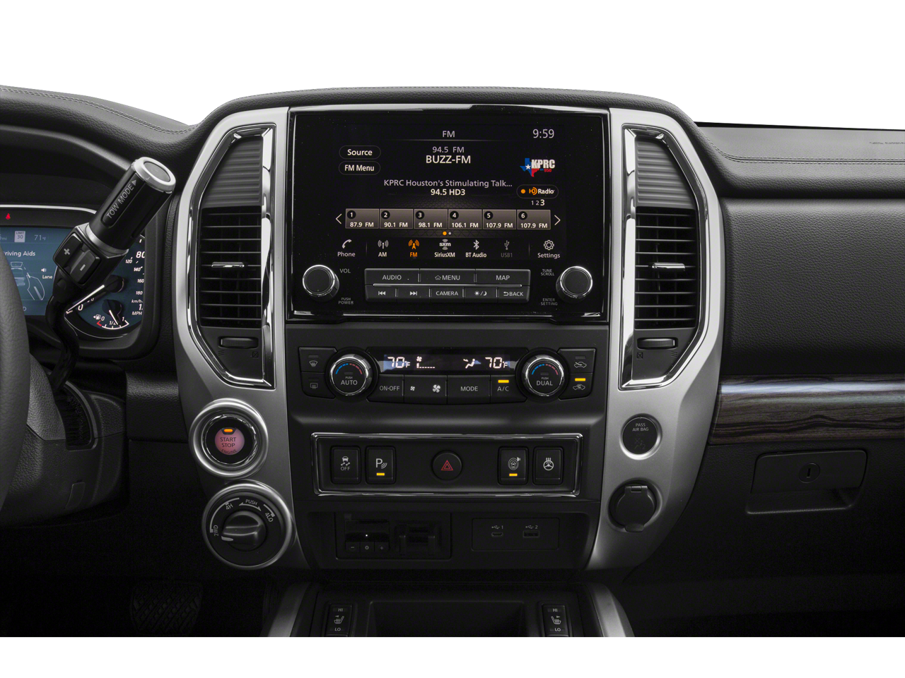 Radio: NissanConnect w/Navigation -inc: 9" touchscreen display, 12 speaker Fender premium audio system, Apple CarPlay, Android Auto, HD Radio, SiriusXM satellite radio, SiriusXM Traffic, SiriusXM Travel Link w/weather, fuel prices, movie listings, stock info, sports and parking, TomTom weather, Nissan door to door navigation w/3D building graphics and satellite imagery, online POI search, over-the-air map updates and online premium traffic information, 2-USB (1 type A, 1 type C) connection ports for iPod interface and other compatible devices, 2 USB A ports (charge only), Bluetooth® hands-free phone system, streaming audio via Bluetooth®, hands-free text messaging assistant, Nissan Connect services, WiFi hotspot, Nissan voice recognition for navigation and audio, Siri Eyes Free and follow me home function