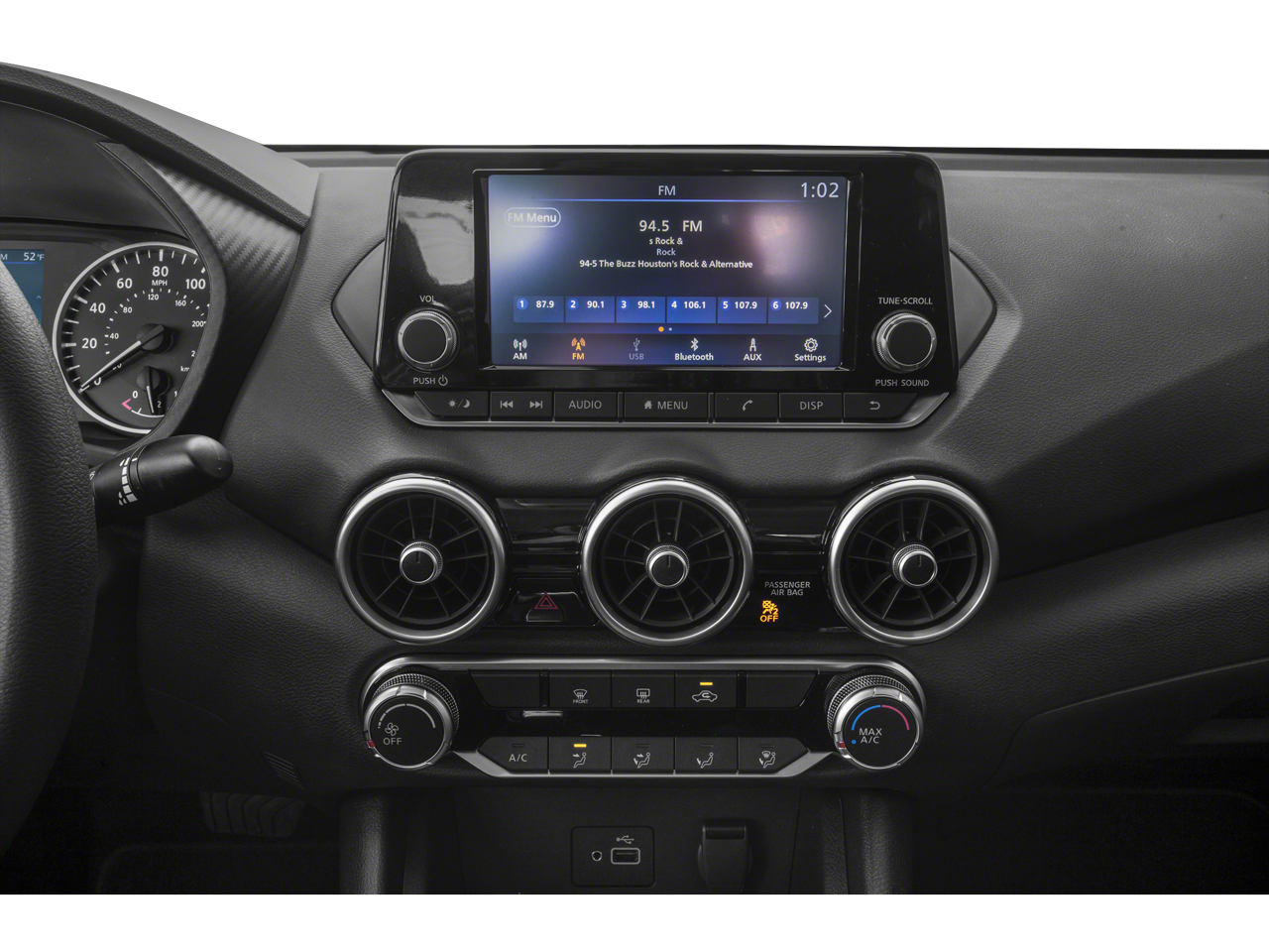 Radio: AM/FM w/RDS/MP3/Aux-In -inc: 6 speakers, 8" color display w/multi-touch control, streaming audio via Bluetooth®, Bluetooth® hands-free phone system, hands-free text messaging assistant, Siri eyes-free, Google Assistant voice recognition w/Apple CarPlay and Android Auto, NissanConnect, (1) front USB connection port (type A) for iPod interface and other compatible devices, (1) additional front USB (type C) and (1) charge-only USB (type A) center console and SiriusXM radio