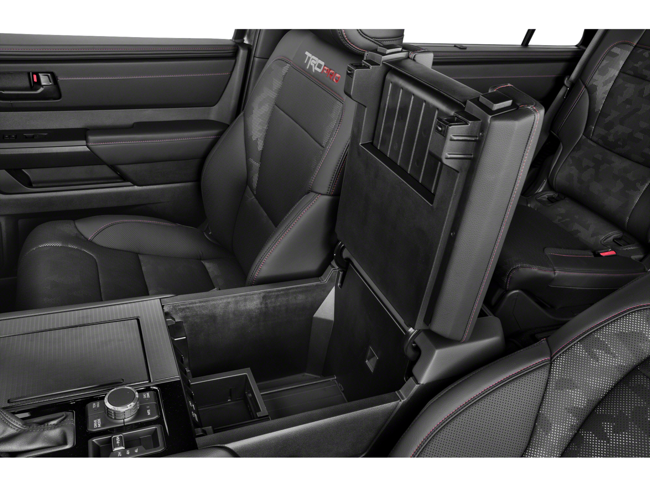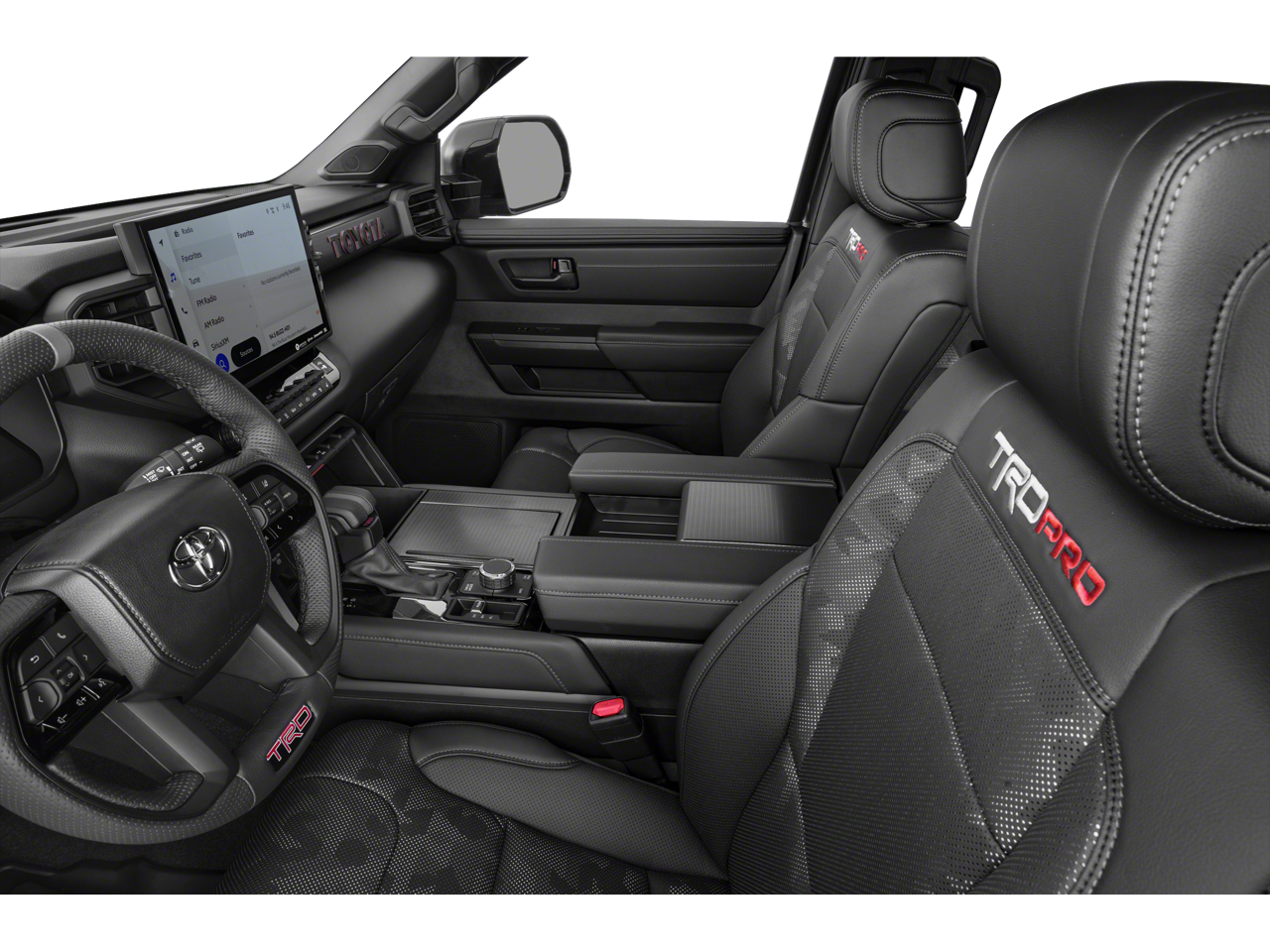 TRD Pro Leather-Trimmed Steering Wheel -inc: Manual tilt/telescopic, TRD badge, red center stripe and phone, audio, display/infotainment and driver assist controls